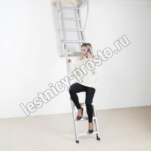 Лестница чердачная складная алюминиевая 3-х секционная. Ступени полностью выполнены из алюминия.