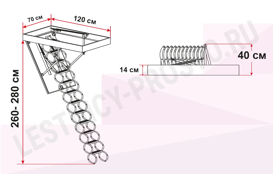 Чердачная термоизоляционная ножничная лестница FAKRO LST 70×120 см, h-280 см