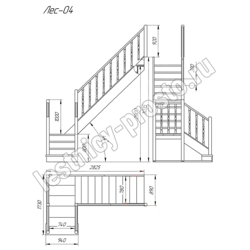 Деревянная межэтажная лестница ЛЕС-04, Лиственница