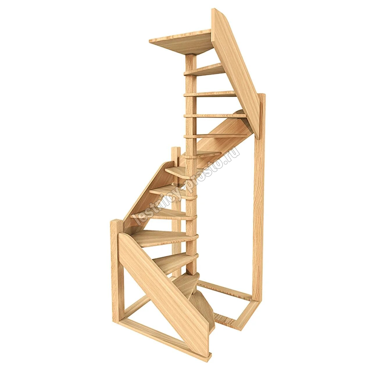Деревянная межэтажная лестница ЛЕС-1,2ВУ, Лиственница