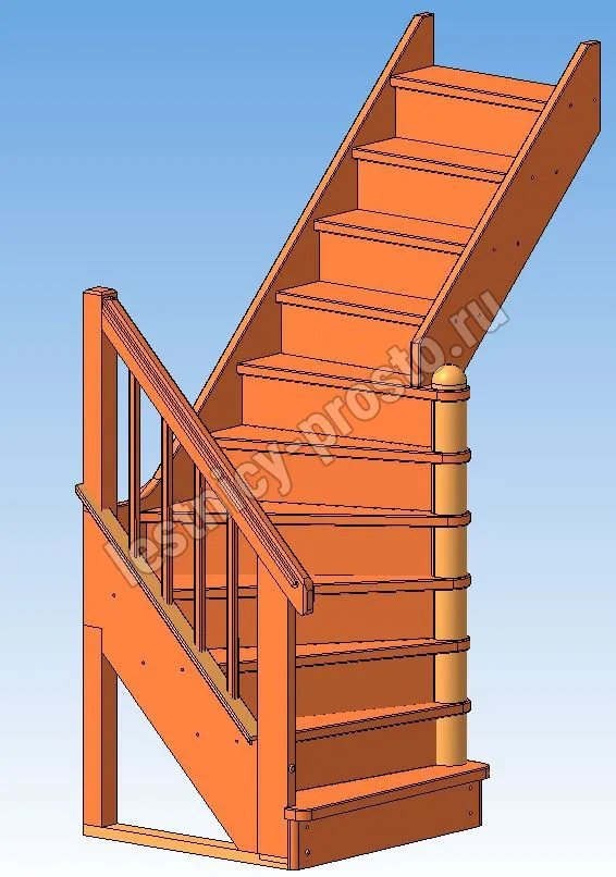 Компактная комфортная лестница с подступенками. Базовый комплект включает в себя деревянные элементы лестницы без какого-либо покрытия. Лестница поставляется в разобранном виде.