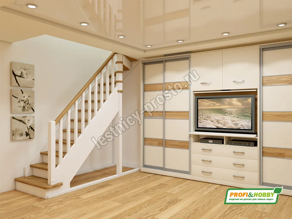 Ступени и поручень лестницы изготовлены из бука, остальные элементы из сосны.
