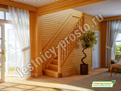 Базовый комплект включает в себя деревянные элементы лестницы и ограждения без какого-либо покрытия.