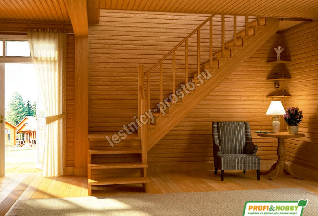 Ступени и поручень лестницы изготовлены из дуба, остальные элементы из сосны.