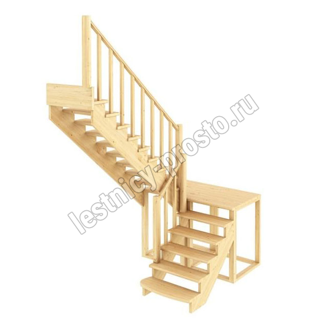 Материал: Дуб (ступени и поручень), сосна (косоуры, столбы, балясины)