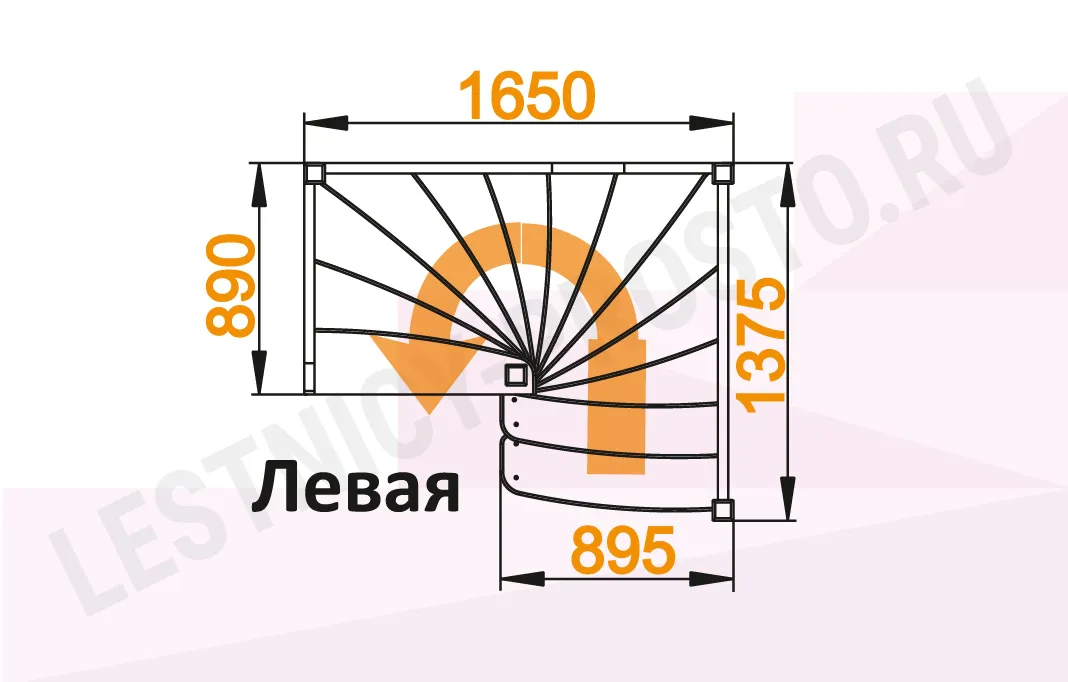 Схема лестницы ЛС-01М с поворотом налево