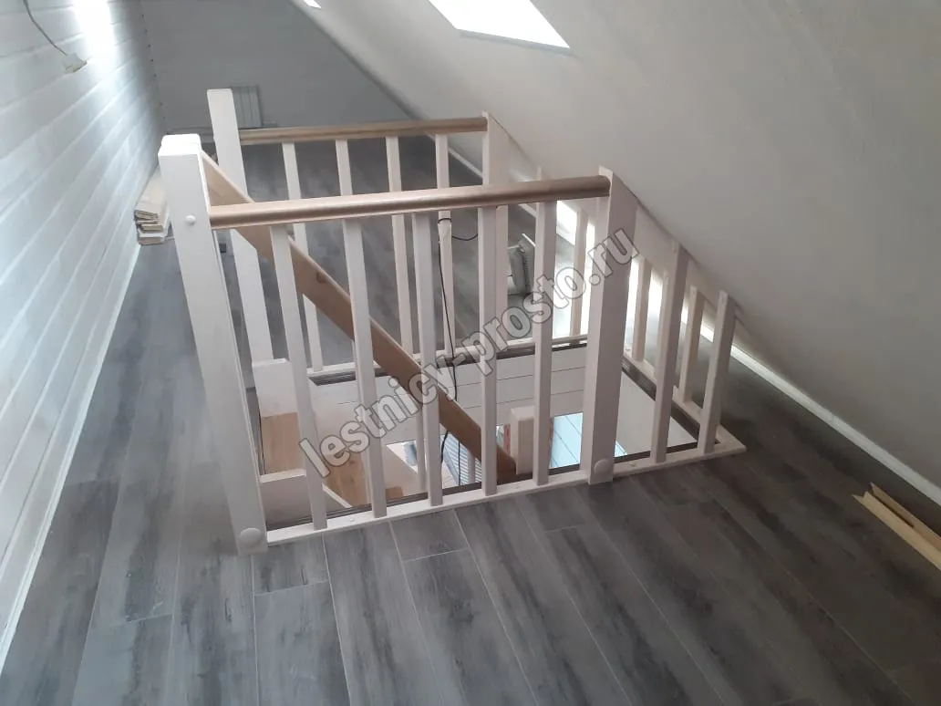 Базовый комплект включает в себя деревянные элементы лестницы и ограждения без какого-либо покрытия.