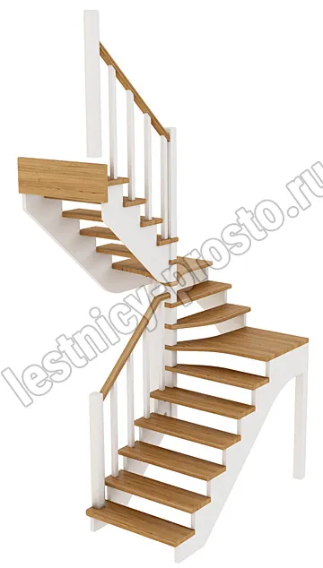Ограждение лестницы с одной стороны. Базовый комплект включает в себя деревянные элементы лестницы и ограждения без какого-либо покрытия.