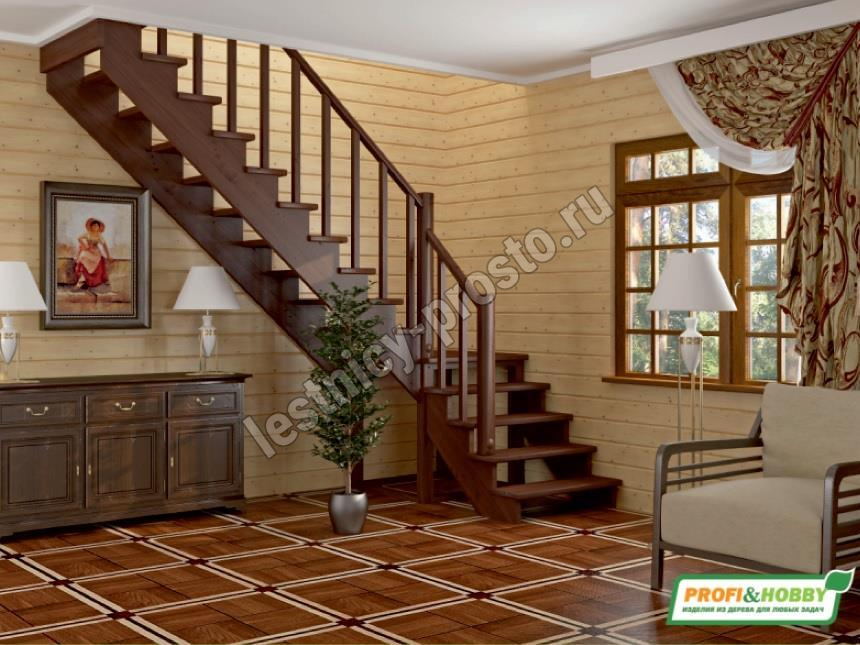 Ступени и поручень лестницы изготовлены из ясеня, остальные элементы из сосны.