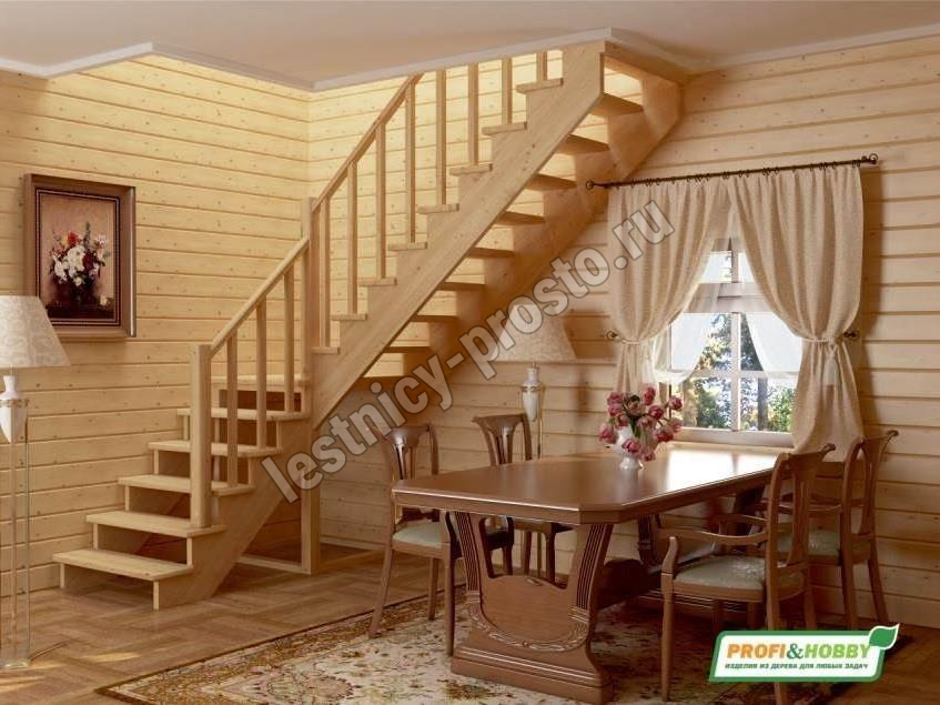 Ступени и поручень лестницы изготовлены из ясеня, остальные элементы из сосны.