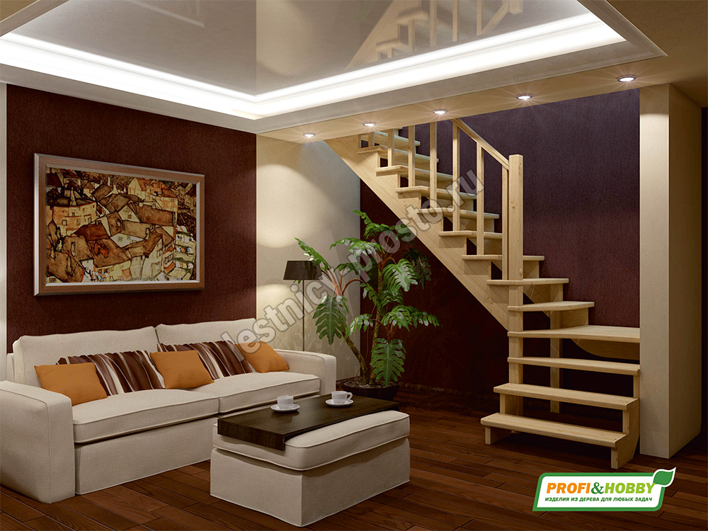 Ступени и поручень лестницы изготовлены из ясеня, остальные элементы из сосны.