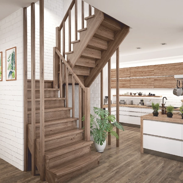 Сочетание оптимального угла подъема, комфортного широкого марша и глубокой ступени делают лестницу одной из самых удобных.
