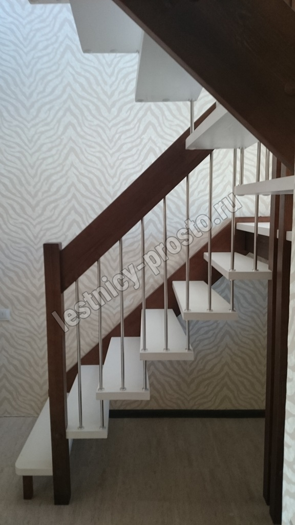 Надёжная современная лестница выполнена по немецкой технологии. Стоимость указана для лестницы с ограждением (с одной стороны); Поставляется в разобранном виде, в комплекте необходимый крепёж; Лестницу можно собрать самостоятельно; Так же, вы можете заказать услугу монтажа нашими специалистами; 4 вида породы дерева для изготовления лестницы: сосна, бук, ясень, дуб; возможна комбинированная лестница: из сосны (ступени бук, ясень, дуб); Деревянные элементы без какого-либо покрытия, отшлифованы, готовы к покраске. За дополнительную плату, вы можете изменить любые параметры, а именно: увеличить глубину ступени; увеличить ширину марша до 900 мм. и выше; заказать подступенки к лестнице; заказать отделку перекрытия (между 1-м и 2-м этажами); изготовить дополнительный промежуточный марш; заказать ограждение 2-го этажа; покраска в любой цвет или несколько цветов или покрытие защитными средствами; дополнение балясины из нержавеющей стали деревянными элементами; покраска балясин из нержавеющей стали порошковой краской в цвет RAL.