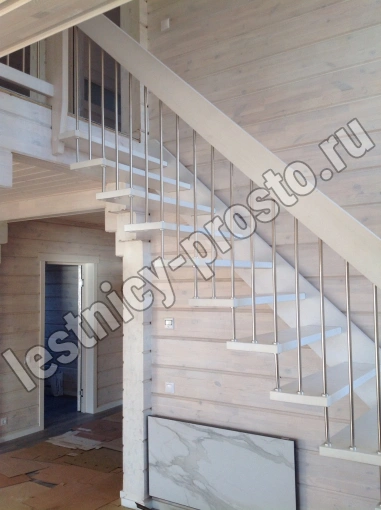Надёжная современная лестница выполнена по немецкой технологии. Стоимость указана для лестницы с ограждением (с одной стороны); Поставляется в разобранном виде, в комплекте необходимый крепёж; Лестницу можно собрать самостоятельно; Так же, вы можете заказать услугу монтажа нашими специалистами; 4 вида породы дерева для изготовления лестницы: сосна, бук, ясень, дуб; возможна комбинированная лестница: из сосны (ступени бук, ясень, дуб); Деревянные элементы без какого-либо покрытия, отшлифованы, готовы к покраске. За дополнительную плату, вы можете изменить любые параметры, а именно: увеличить глубину ступени; увеличить ширину марша до 900 мм. и выше; заказать подступенки к лестнице; заказать отделку перекрытия (между 1-м и 2-м этажами); изготовить дополнительный промежуточный марш; заказать ограждение 2-го этажа; покраска в любой цвет или несколько цветов или покрытие защитными средствами; дополнение балясины из нержавеющей стали деревянными элементами; покраска балясин из нержавеющей стали порошковой краской в цвет RAL.