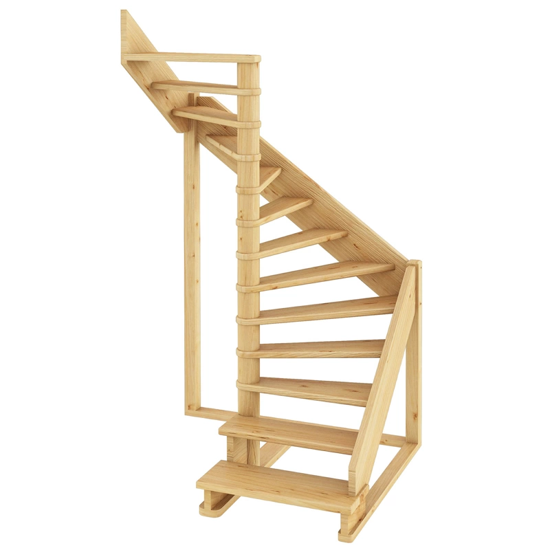 Лестница Универсал изготавливается как с поворотом направо, так и с поворотом налево. Под заказ возможно изготовление лестницы Универсал с высотами этажа: 2300 мм, 2500, мм, 2700 мм, 2900 мм, 3100 мм. В стандартной комплектации лестница поставляется в натуральном цвете, то есть без окрашивания. Первая ступень может быть пригласительной (со скругленными краями или прямой). Базовые ограждения можно заменить на ограждения любого другого вида.