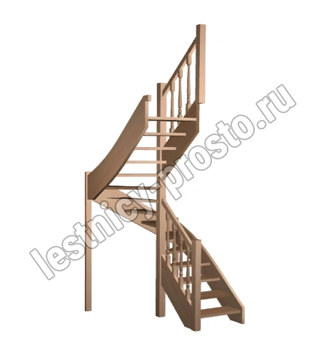 Базовый комплект включает в себя деревянные элементы лестницы и ограждения без какого-либо покрытия. В стандартной комплектации лестницы поставляются с квадратными столбами и точеными балясинами, при желании, можно заменить вид ограждений на любые другие из нашего каталога (оплачивается и оговаривается отдельно). Под заказ возможно изготовление данной лестницы с другими размерами, подходящими вашему помещению.