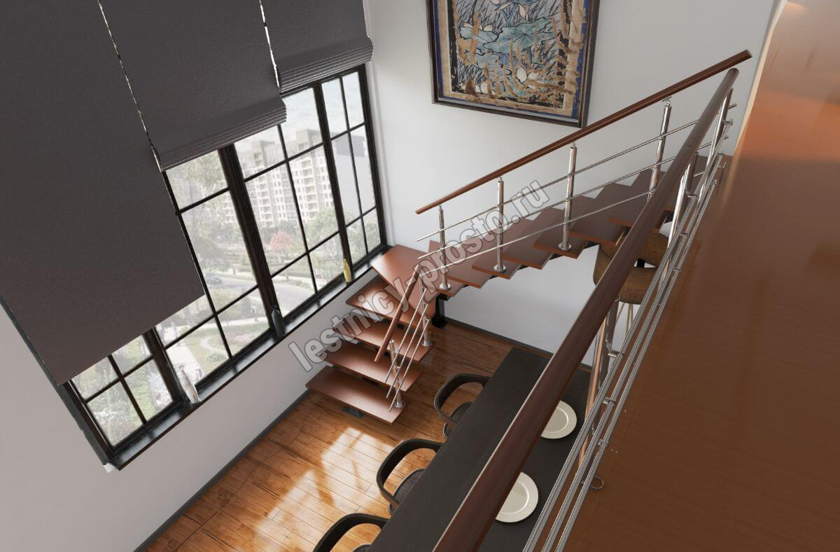 Комплект ограждений для Г-образной лестницы PROSTO MONO из 11 ступеней.