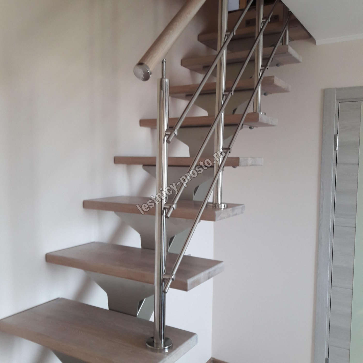 Комплект ограждений для П-образной лестницы PROSTO MONO из 9 ступеней.