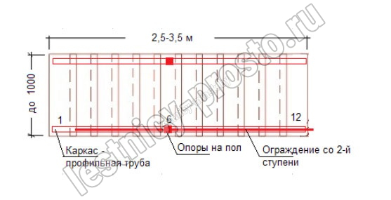 Комплект ограждений подходит для прямой лестницы на металлокаркасе PROSTO DUE и PROSTO DOUBLE из 12 ступеней. <br>