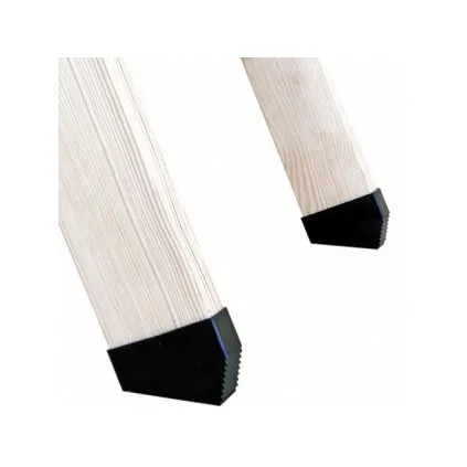 Изготавливаются из поливинилхлорида, защищают пол от возможных царапин, делают лестницу более устойчивой, облегчают подгонку длины лестницы, когда ее необходимо немного укоротить, за счет того, что в своей конструкции такая насадка уже имеет скос и две направляющие лестницы достаточно обрезать под прямым углом. Плотно одеваются на края двух направляющих и фиксируются еще и саморезом - закручивается снизу (в деревянных моделях).