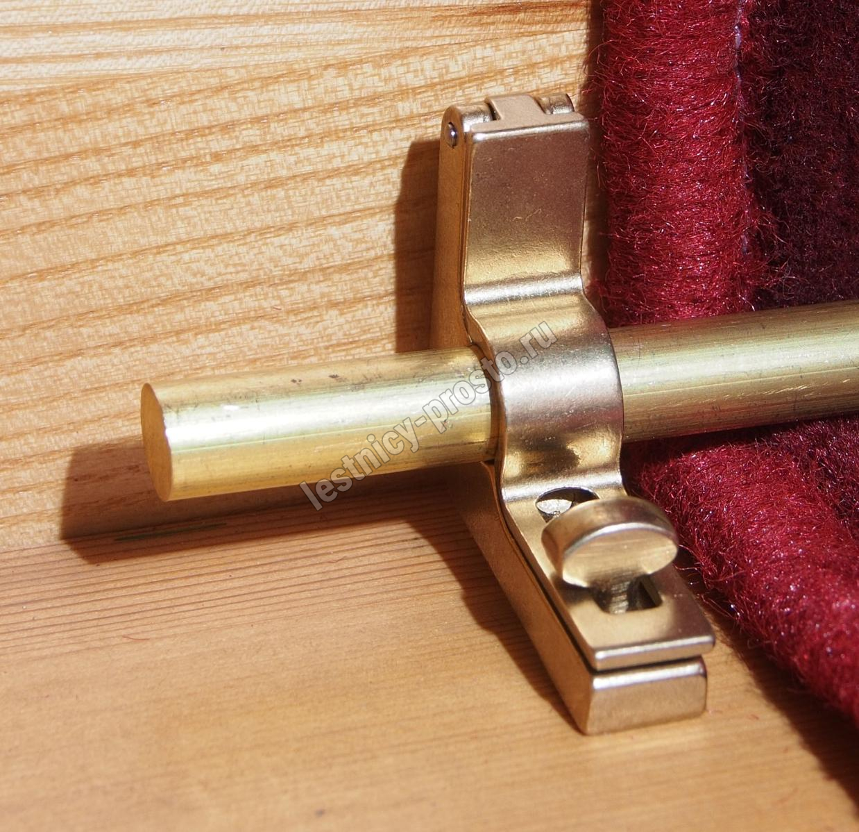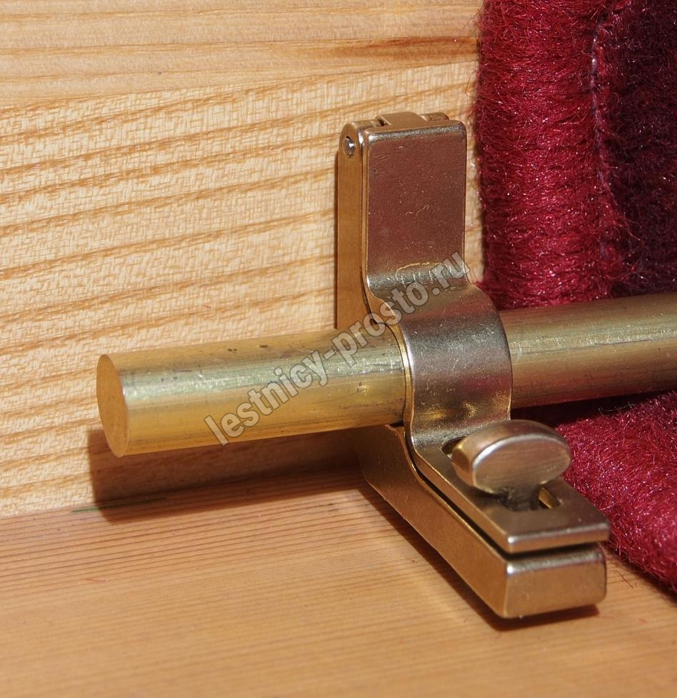 Ковродержатель комплектуется двумя держателями из латуни цвета золото, а также цельным прутком из латуни длиной от 131 до 170 см. Конструкция является сборно-разборной не требующей демонтажа креплений, что делает ее долговечной и очень удобной для чистки ковров и ковровых покрытий.
