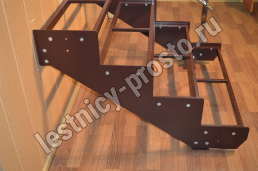 Покрытие порошковое, очень прочное и долговечное. Все детали каркаса крепятся с помощью болтов, благодаря чему Вы можете собрать каркас самостоятельно без применения сварки. В зависимости от ширины лестницы, каркас состоит из двух (ширина до 1 метра) или трех (ширина до 2 метров) опорных балок (тетив).