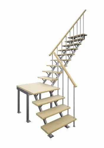 Поворот на 90° реализован посредством поворотных ступеней, высота поворота определяется параметрами вашего помещения и размерами проёма.