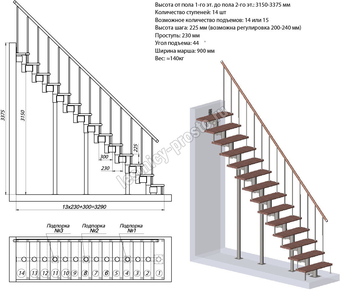 Высота лестницы 1800 - 3375 мм