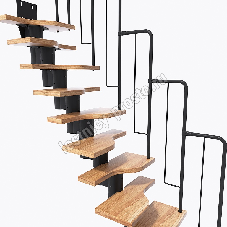Лестница Prosto Urban Black гусиный шаг 700 мм, h198-288 см (11 ступеней), дуб