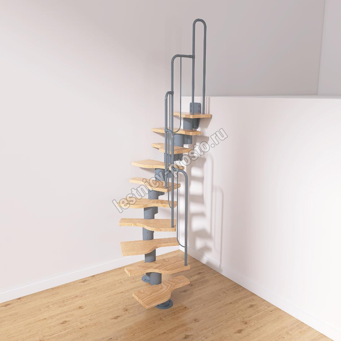 Лестница Prosto Urban Grey г-образная гусиный шаг 600 мм, h180-264 см (10 ступеней)