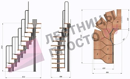 Лестница Prosto Urban Grey г-образная гусиный шаг 600 мм, h198-288 см (11 ступеней)