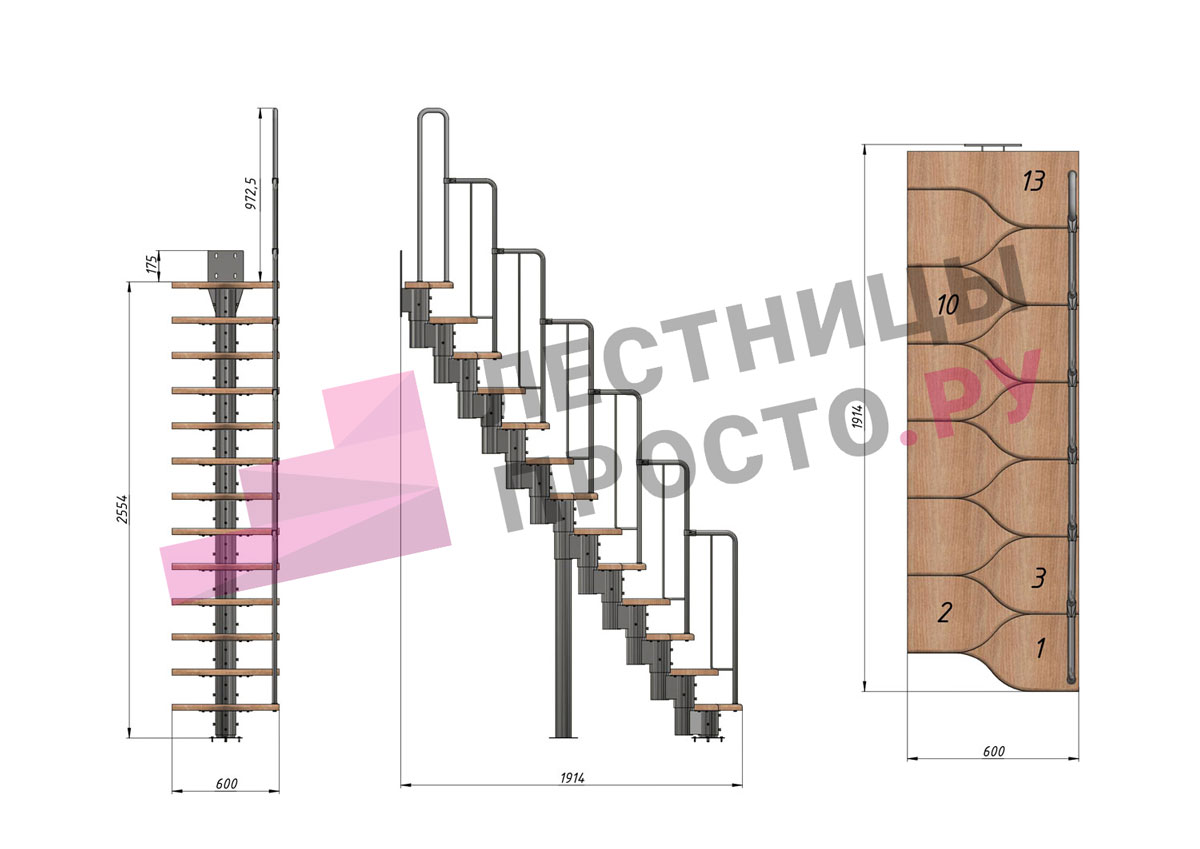 соответствует картинке, но вы не ограничены в его выборе. Лестницу можно приобрести и без ограждения, и с любым другим. Устанавливать на такую лестницу можно почти всё, начиная от классических деревянных балясин и заканчивая эксклюзивными коваными изделиями.