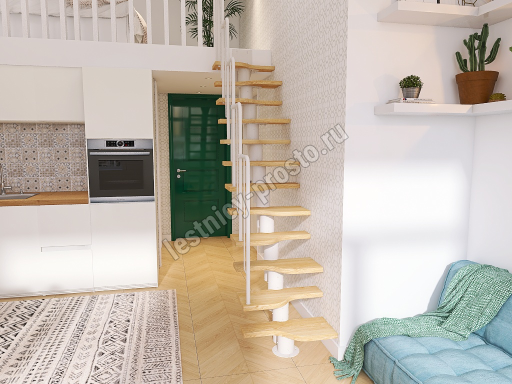 Лестница Prosto Urban White гусиный шаг 600 мм, h234-336 см (13 ступеней), берёза мультиплекс