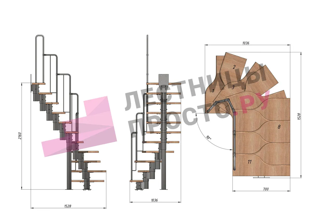 - Регулируемый по высоте в пределах 180-240 мм модуль. Большой диаметр и толщина металла деталей обеспечивают жесткость и прочность конструкции. Регулировка каждого модуля по высоте позволяет легко приспособить лестницу под ваше помещение.