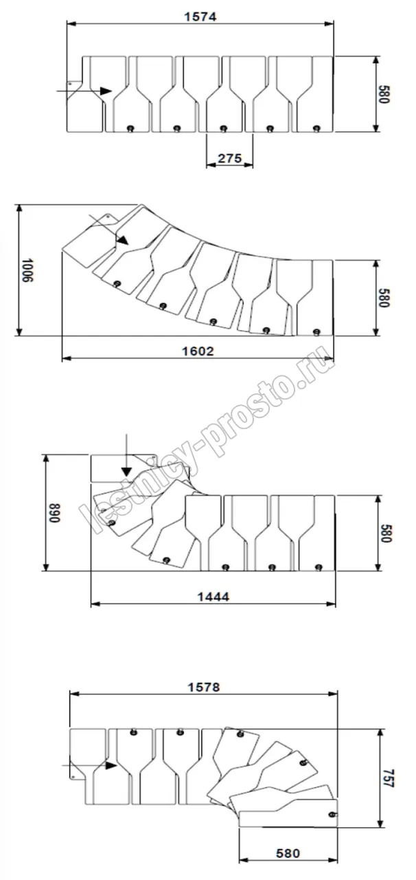 Модульность конструкции позволяет регулировать высоту лестницы при сборке и собрать необходимый поворот до 90 градусов. Ограждение устанавливается на любую сторону.