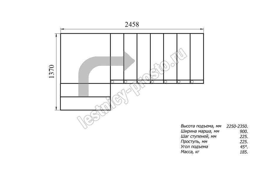 Модульная лестница Статус 225 2250-2350, Серый, Сосна, Крашеная, Без Ступений
