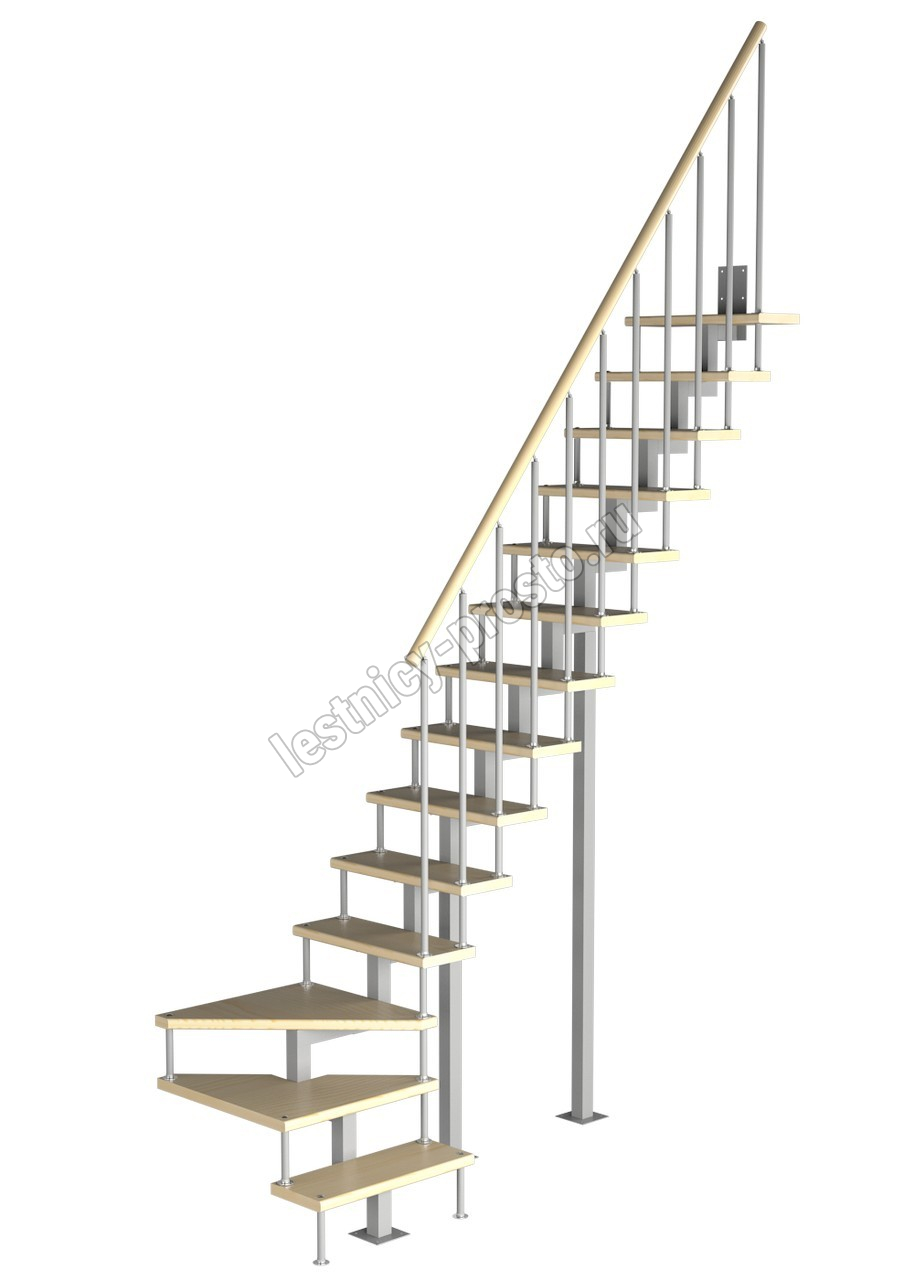 Модульная малогабаритная лестница Компакт 3150-3375, Белый, Бук, Нержавеющая сталь