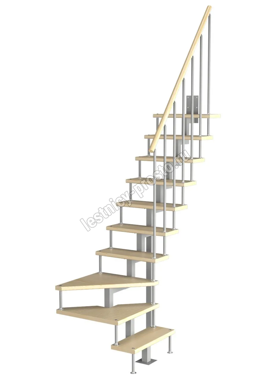 Модульная малогабаритная лестница Компакт 2700-2925, Серый, Бук, Нержавеющая сталь