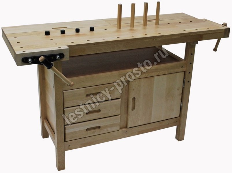 Все верстаки изготовлены из особо прочной древесины, обладают повышенной прочностью и износостойкостью, легко собираются и комплектуются удобными секциями для хранения инструментов.
