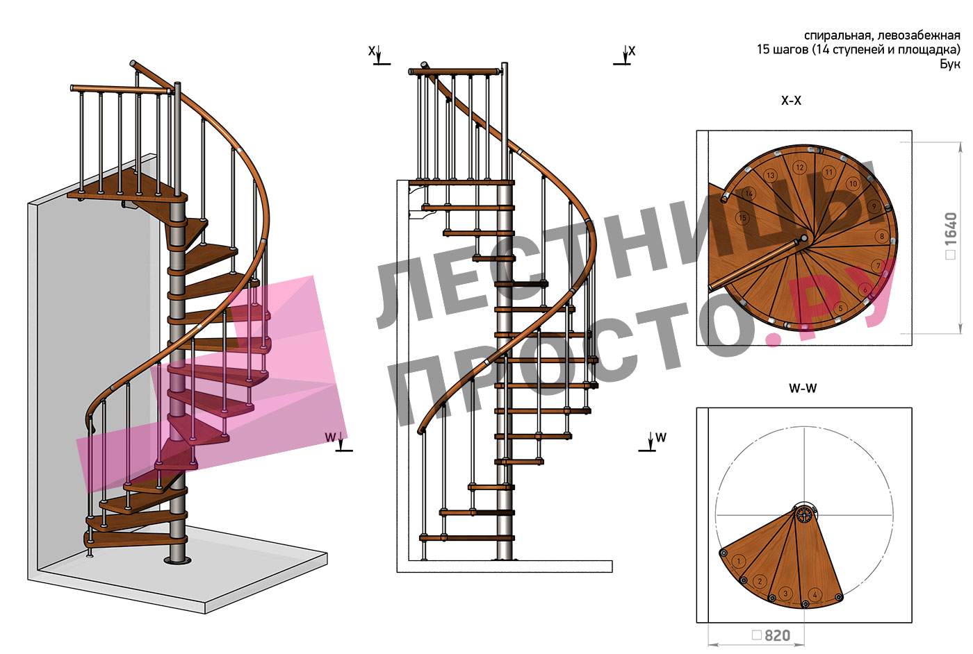 | Винтовая лестница Prosto Spiral Black D160см, h282.2-326,3 см, бук |