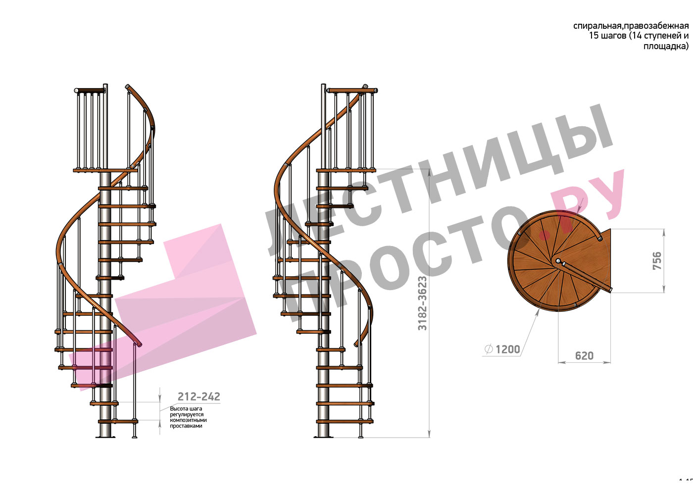 Винтовая лестница Prosto Spiral Black/Высота 3182 - 3623 мм