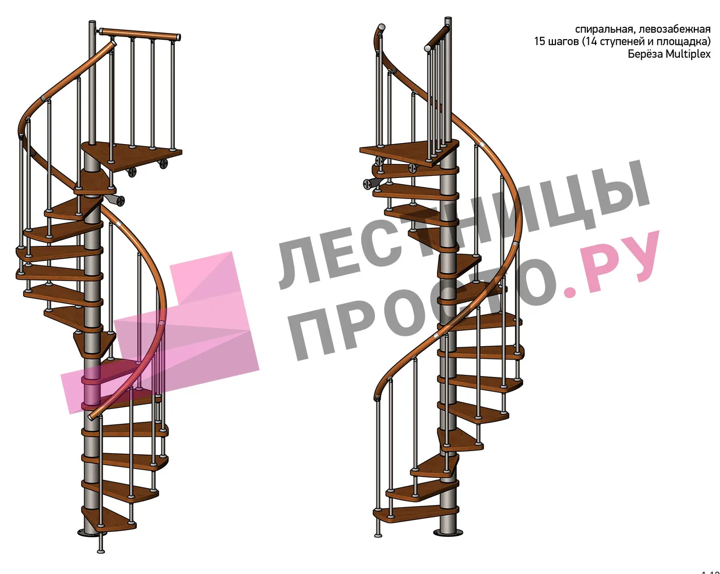 Винтовая лестница Prosto Spiral White D120см, h318.2-362.3 см