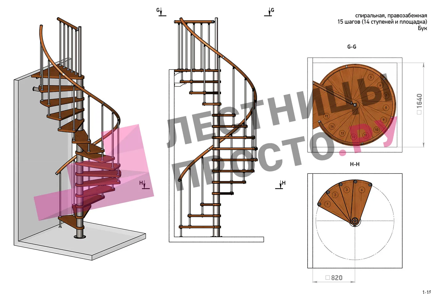 | Винтовая лестница Prosto Spiral White D160см, h303.9-348,1 см, бук |