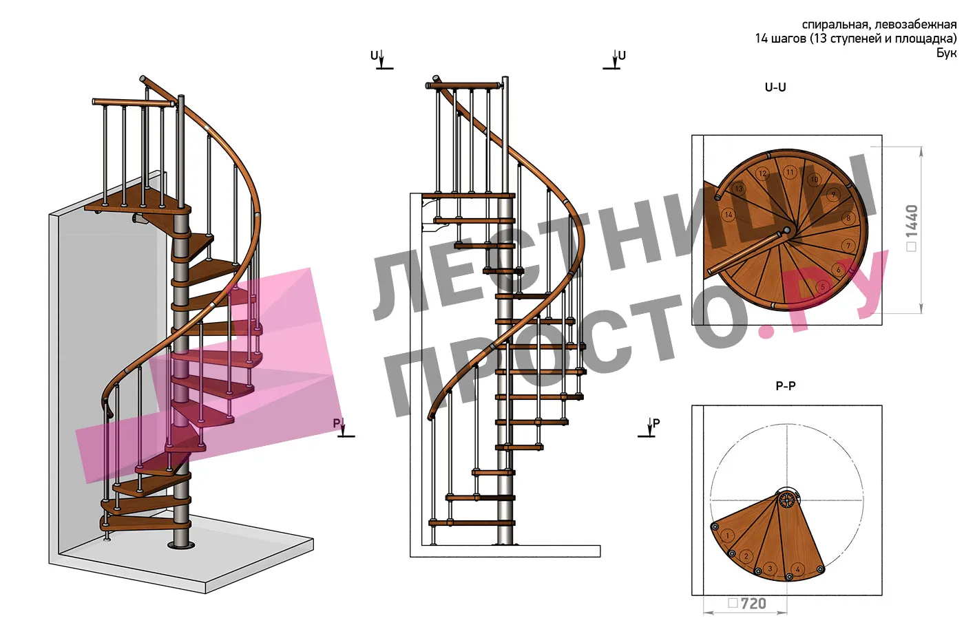 | Винтовая лестница Prosto Spiral White D140см, h325.7-369.8 см, бук |