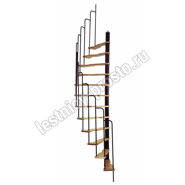 Компактная надёжная лестница. Ступени толщиной 30 мм, изготовлены из массива берёзы по технологии Multiplex, лакированные. Все металлические части оцинкованы горячим способом и покрыты порошковой краской - черного цвета; Лестница имеет надёжную несущую стальную конструкцию.