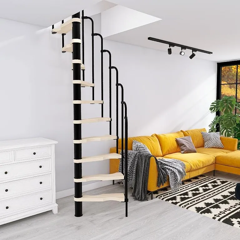 Лестницы RONDO COLOR - идеальное решение для создания непринужденного акцента в интерьере. Они отлично смотрятся в индустриальных и дизайнерских проектах. Модель идеально подходят в качестве лестницы на только что созданный этаж, а также на адаптированный чердак или антресоли. В стандартный комплект входит 12 ступеней и площадка, позволяющие преодолевать перепад уровней до максимальной высоты 300 см. Элементы конструкции имеют плавный диапазон регулировки, позволяющий устанавливать высоту ступеньки в пределах 21-23 см. По запросу возможно конфигурирование набора до максимальной высоты 346 см. Все металлические элементы покрыты порошковой краской высочайшего качества графитового цвета, устойчивого к царапинам и механическим повреждениям. Профилированные нескользящие ступени из листового металла в клетку, снабженные небольшим подступенком для большей безопасности. Алюминиевые поручни с высококачественным порошковым покрытием. Напольные перила по запросу, прямые или круглые. Лестница приспособлена для установки отдельно стоящей, правосторонней или левосторонней.