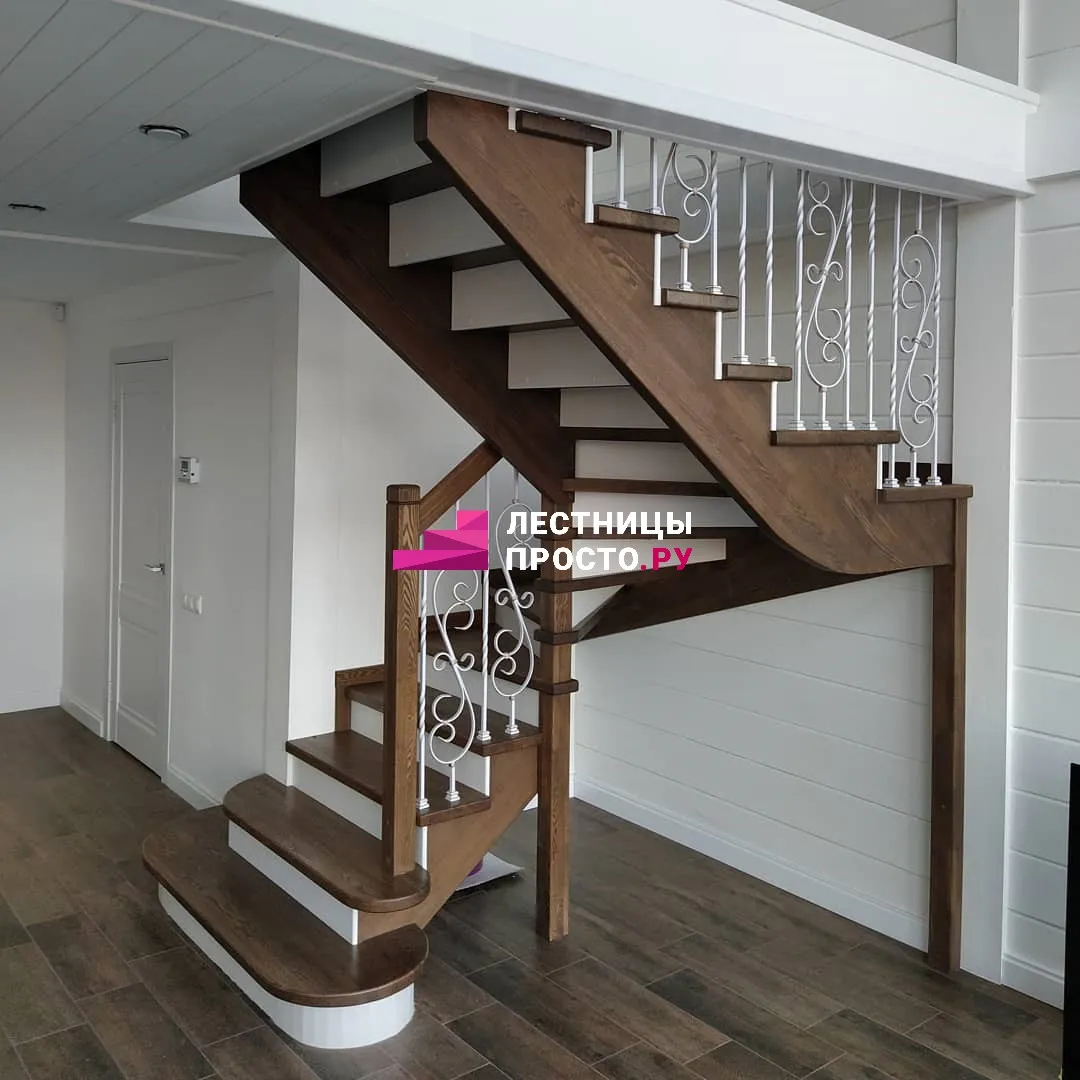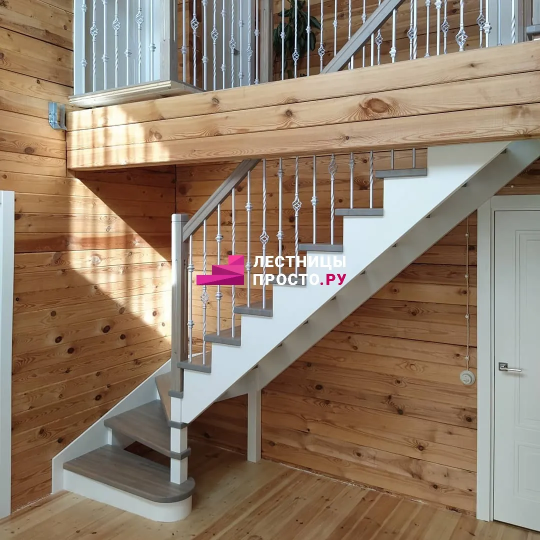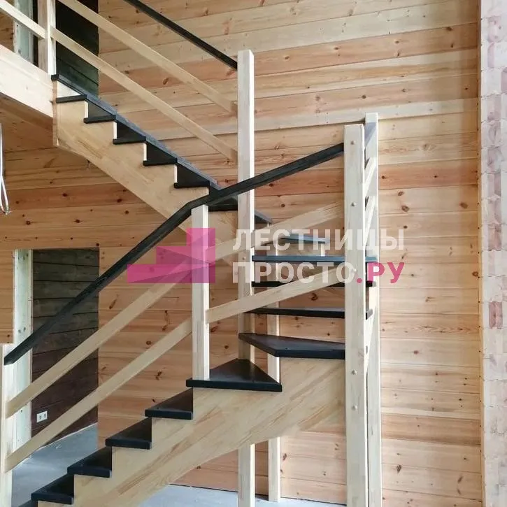 Лестница из сосны с поворотом без покраски
