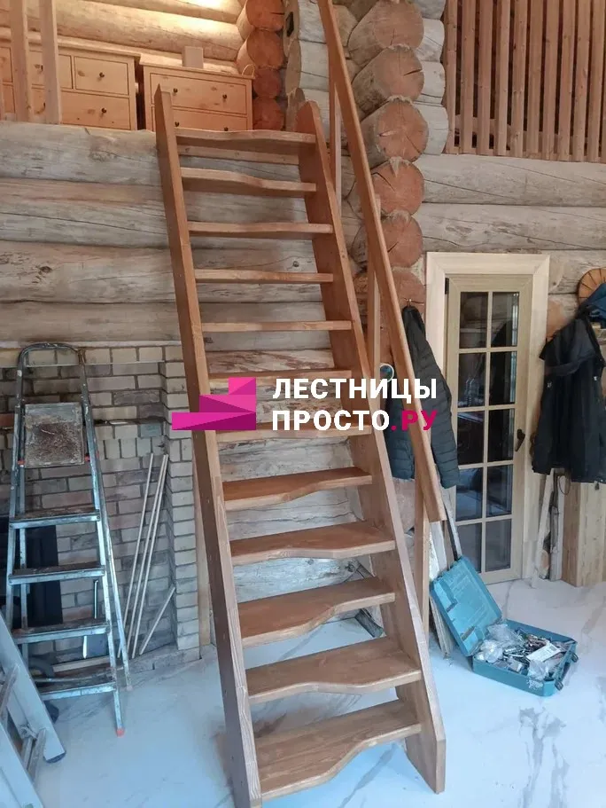 Прямая лестница из сосны без покраски