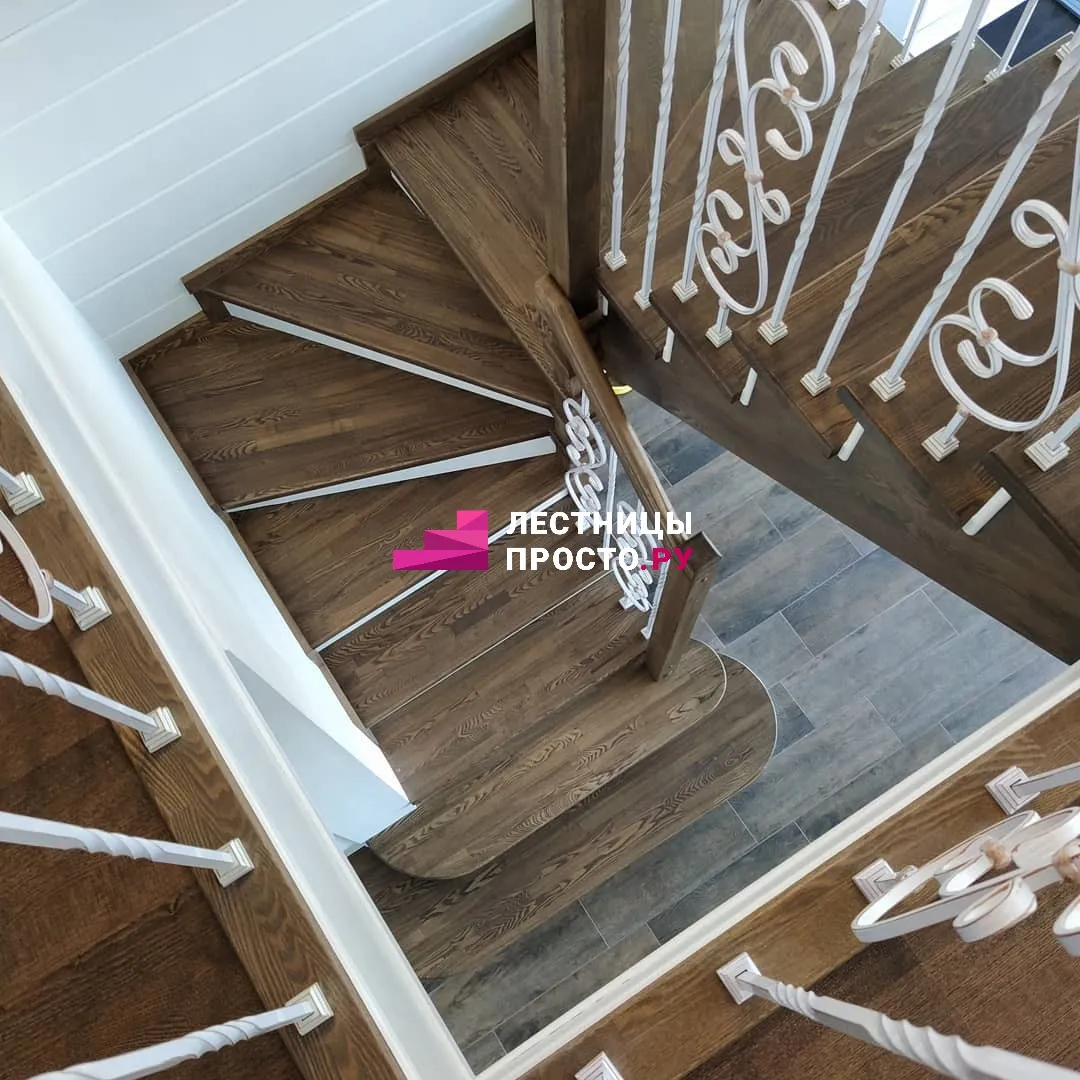 Лестница из ясеня с кованым ограждением по индивидуальному проекту LP-055