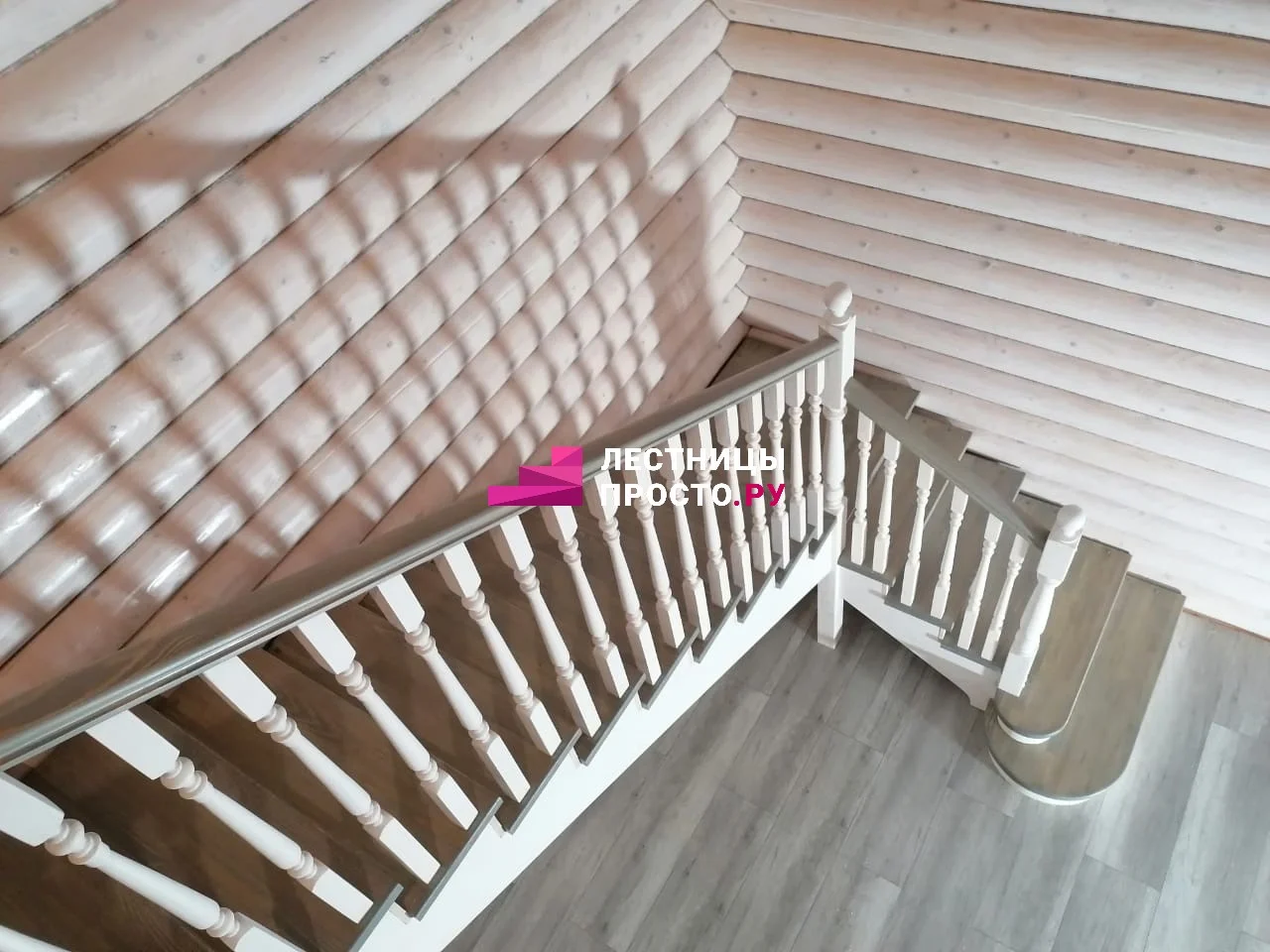 Лестница на второй этаж из лиственницы по индивидуальному проекту LP-000468